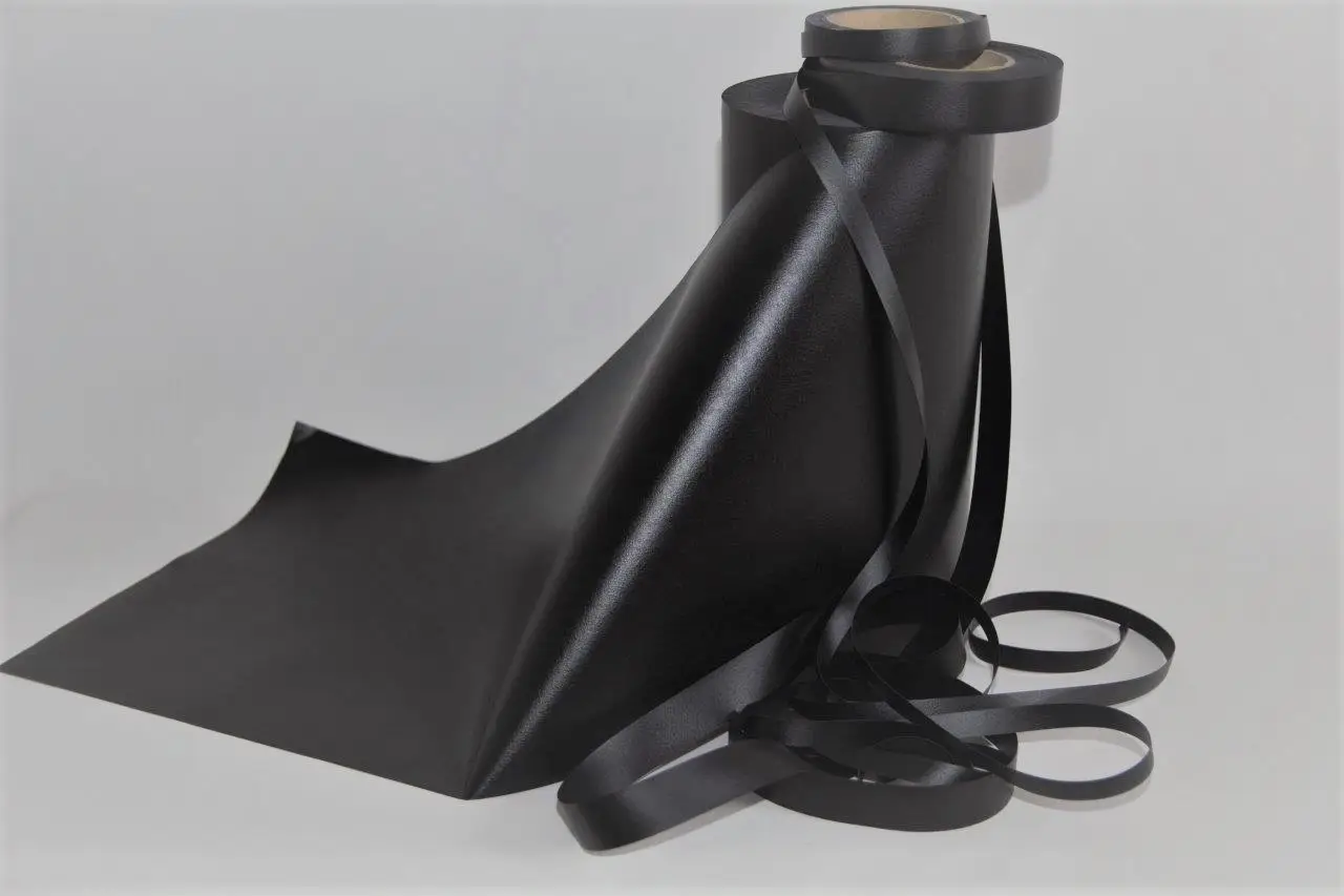 black VDS rubber treated for bounding with epoxy, ready for use. 0,2mm thick.